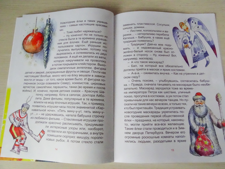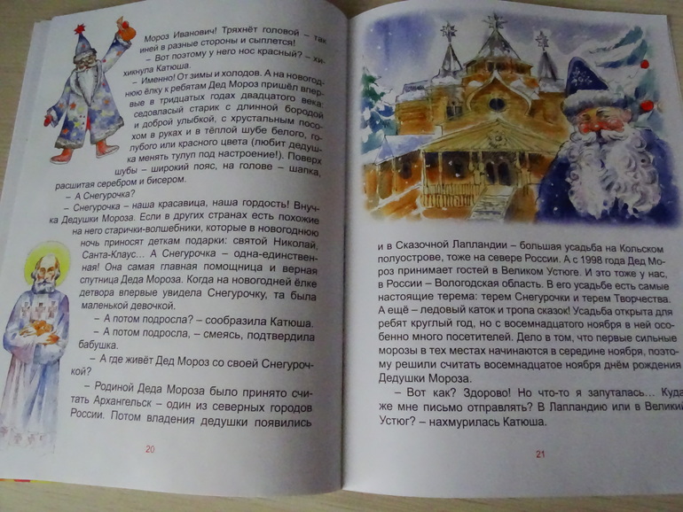 Когда передо мной встал вопрос,как понятно рассказать ребёнку о том,что такое Новый год,на помощь пришла эта книга.Вместе с девочкой Катюшей мы узнали,почему в этот праздник принято наряжать ёлочку,как зародилась традиция подавать на стол мандарины и как появился салат оливье.А ещё,что такое маскарад,как праздновали Новый год наши прабабушки и прадедушки, ну и ,конечно,где живёт Дед Мороз со своей внучкой Снегурочкой.