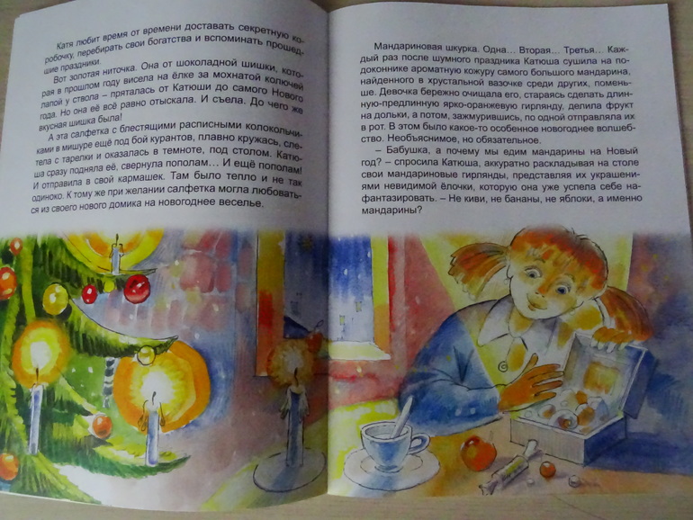 "История Нового года" создаёт атмосферу праздника,волшебства.Манера повествования неспешная,уютная и хочется вместе с девочкой Катюшей заглянуть в её секретную коробочку и снова,и снова слушать рассказы её бабушки про Новый год.