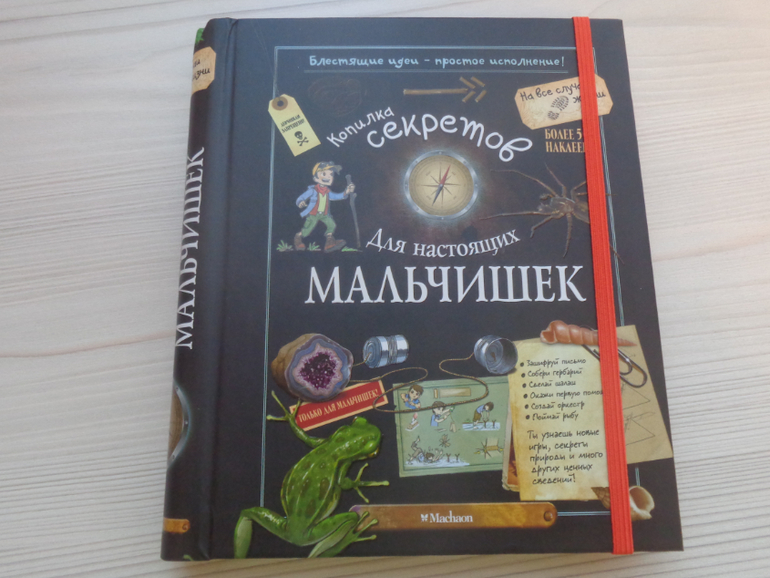 Книгу я увидела в обычном книжном и меня сразу привлекла черная обложка и ярко-красная резинка! Название так вообще загипнотизировало! Открыла - а там!!! Чего только нет!!! Информация самая разнообразная, не глубокая, исчерпывающая и детальная, а краткая и познавательная. Мне кажется, для мальчишки 7-12 лет - самое то!