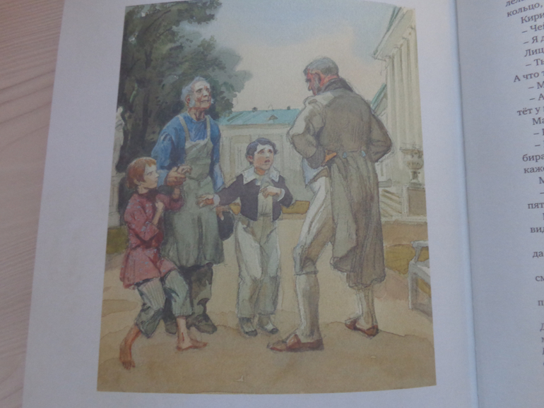 Иллюстраций в книге не очень много (но это и не книжка-картинка) - на каждую повесть начальная и конечная заставка + 3 (реже 2) полностраничные иллюстрации. В Дубровском насчитала 13 иллюстраций. Смотрим)