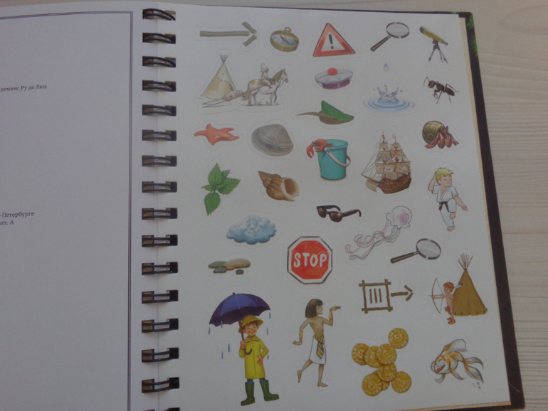 Сзади книги пара разворотов для заметок и рисунков + два листа с наклейками, повторяющими рисунки из книжки. Книга мне напомнила чем-то "Энциклопедию для маленьких принцесс" из детства, только для мальчишек, красочнее и современнее! Очень круто!
