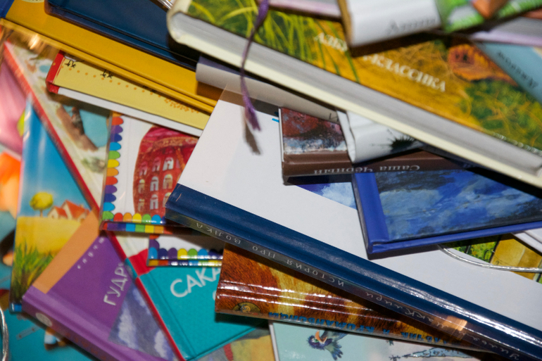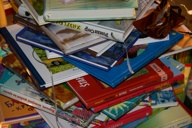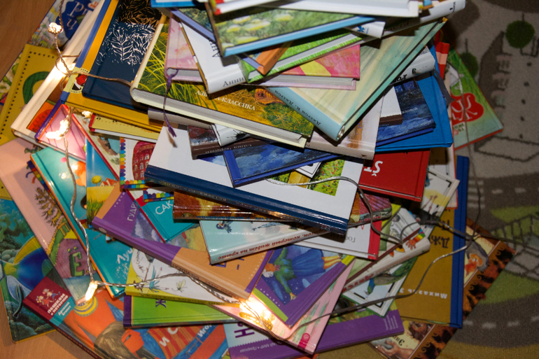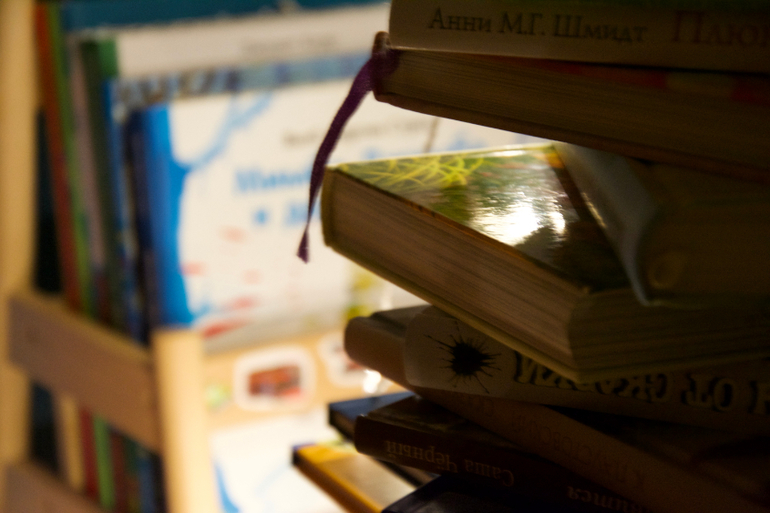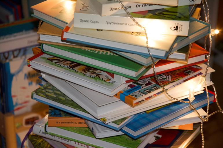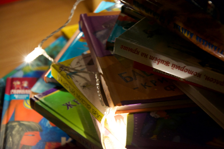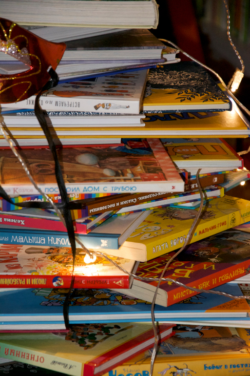 Сквозь стопки можно легко узнать очертание любимой Росиной книги!