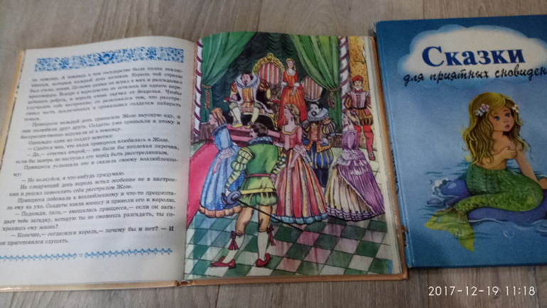 1.Сказки для приятных снов.Издательство "Нугешинвест" 1993. В сборнике сказки разных стран Европы. Есть знакомые Три апельсина,Дюймовочка,Красавица и Чудовище. Иллюстрации очень красивые и яркие.