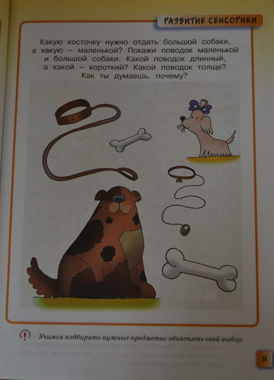 С понятиями длинный-короткий, толстый-тонкий тоже можно поспорить. Во-первых, можно было бы выбрать примеры понагляднее и расположить их рядом, чтобы были четко видны различия. Во-вторых, в данном случае они слишком близки понятиям широкий-узкий. С помощью нитки измерить длину даже я бы не выполнила, наверное, это ребенку сложно сделать. Впрочем, меня и так не приняли бы даже в садик, судя по этому пособию, увы...