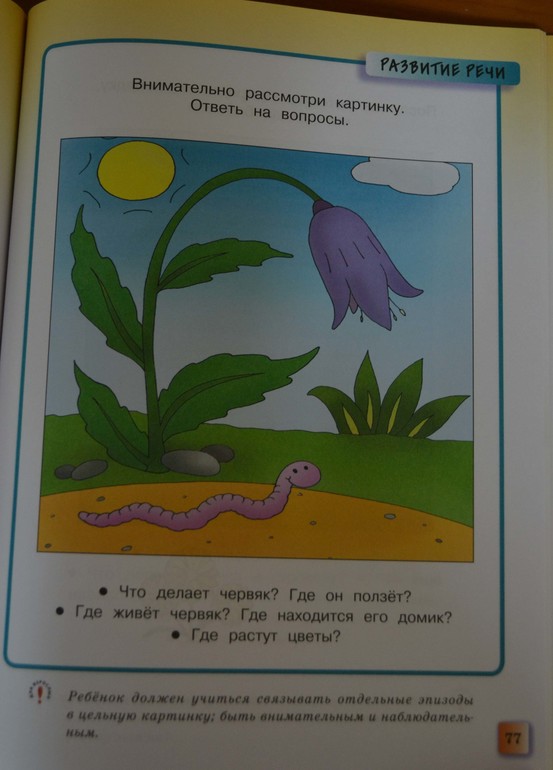 Где живет червяк? Это просто вопрос века!!! «На планете Земля!» - так моя дочь отвечает на вопрос, где мы живем. Универсальный ответ, цветы растут там же. Как внимательное рассматривание ЭТОЙ картинки поможет ребенку узнать, где находится домик червяка, если он там не изображен даже схематически? И есть ли у него вообще дом? Я всю жизнь думала, что червяк живет в норе. И в почве. Это луг? Тогда почему цветок всего один? Или это сад? Или болото? Сплошные вопросы…