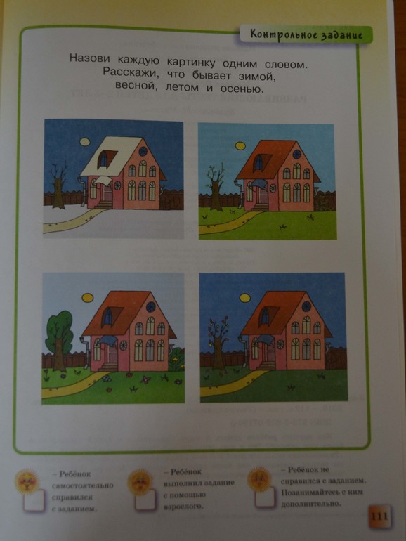 Задание: Назови каждую картинку одним словом - ДОМ! Хотя в следующей части вопроса сражу же дается ответ (зима, весна, лето, осень). Ну почему нельзя было сформулировать вопрос так: Какое время года показано на рисунке? Если люди пытаются учить детей, может сначала сами подружатся с русским языком и логикой…