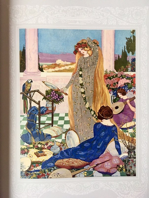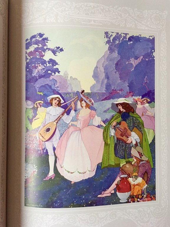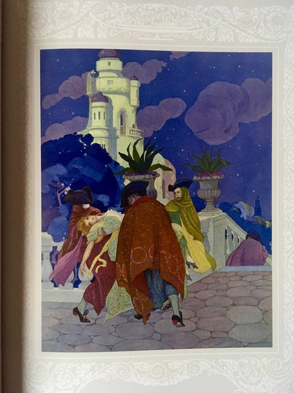 Книга очень красивая!! и сами сказки мне очень понравились! В них полно различных шарфиков, конфет, корзиночек, щенков, ленточек, перстней, карет и тд. Ещё различные превращения, колдовство, говорящие рыбы и птицы, живительная вода, свадьбы опять же.
