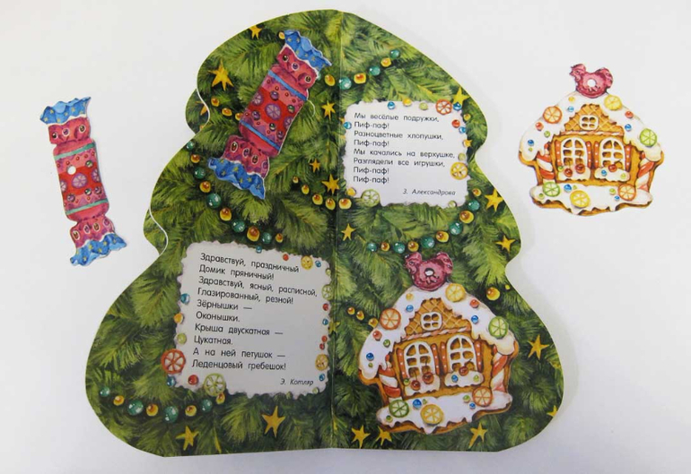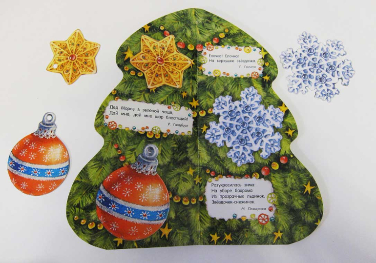 Книга-картонка "Игрушки на елочке" с секретиками. В ней 10 игрушек на елку!