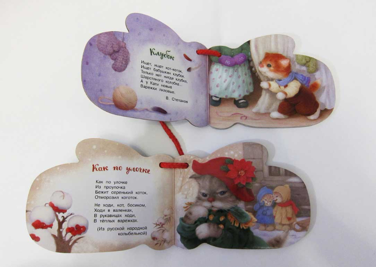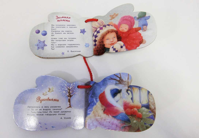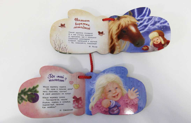 "Рукавички" у нас уже почти год. Выловила их аж в конце января - начале февраля. Тогда просто читали, а сейчас ребенок пытается их на руки натянуть (рукавички с руку маленького ребенка).