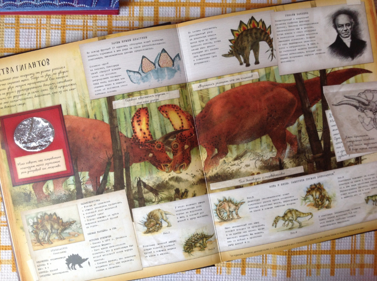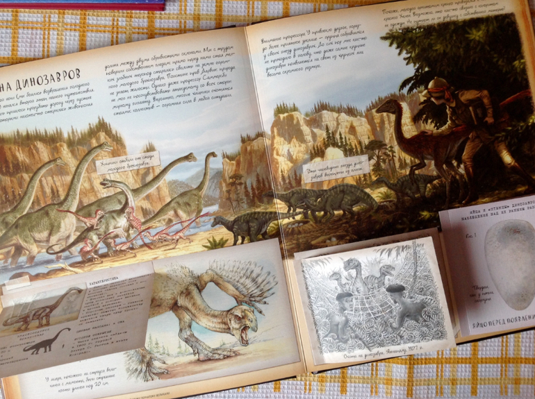 В октябре я готовилась к ДР сына и была уверена, что он заинтересовался Динозаврами! Накупила ему про динозавров: эту книжку, магнитный пазл от Махаон и ещё от Робинс с окошками (забыла сфотографировать). И почти перед самым днём мы с ним понимаем, что заинтересовали его вовсе не динозавры никакие, а .... Драконы!! Просто он их классифицировал как одно семейство. Но драконы конечно круче - летают и огнём дышут, ещё их можно победить)))) и как я сама сразу не догадалась )))) вообщем пока читаем про динозавров!