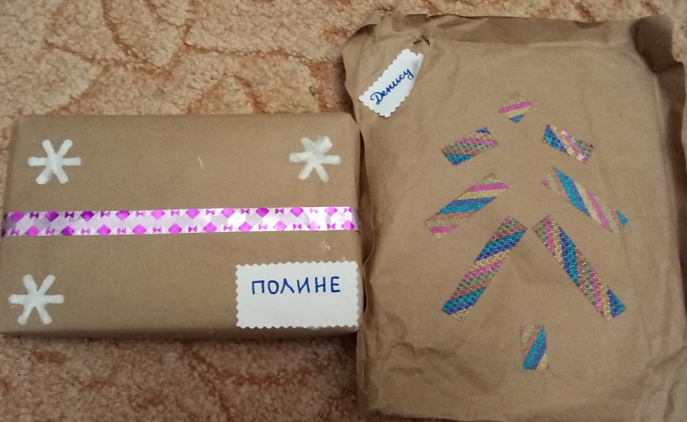 Вот такие две именные, празднично оформленные посылочки мы получили от Вики из Оренбурга!