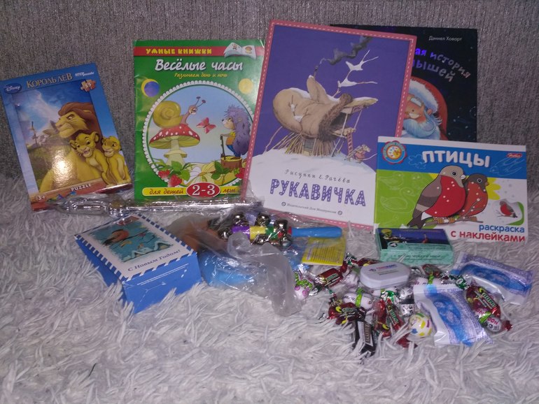Книжечки уже все прочитали! Вот как раз за пару дней до получения подарка вспоминала, что у нас нет Рукавички. И вот благодаря нашим снегурочкам мы теперь каждый день читаем Рукавичку и даже играем:-)