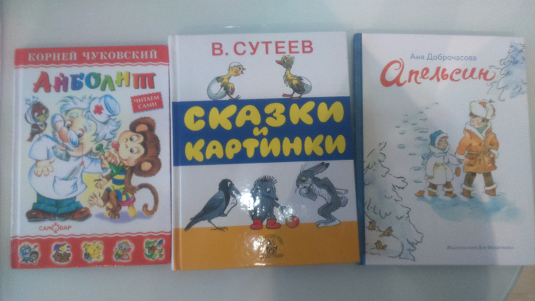 Апельсин Доброчасовой прочитали с сыном в больнице. Рано, ничего не понял пока.