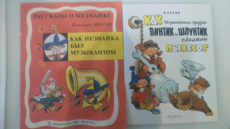 Начинаем знакомиться с Незнайкой. Про музыканта - это бука мужа еще. Над историей про пылесос Святослав громко хихикает.