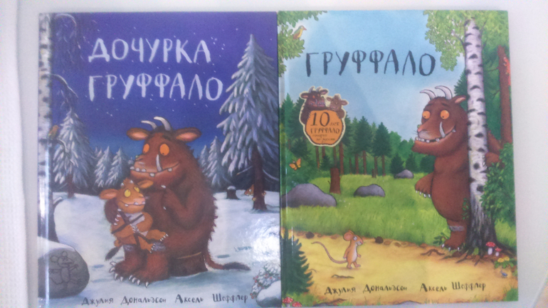 Д. Дональдсон Груффало и Дочурка Груффало - наши любимчики. Дочка несёт их читать каждый день. Часто просят мультик включить, особенно первую часть любят. Придумывают игры, гоняются за монстром Груффало, цитируют..