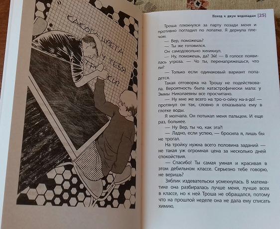 Здесь действуют уже старшие подростки, восьмиклассники. Но проблемы-то остаются те же: как найти себя в этом большом и подчас страшном мире. Здесь есть жесткий подростковый коллектив, в котором действуют законы стаи. Есть "штатный хулиган", с которым не могут справиться ни родители, ни учителя, а посему последние давно махнули рукой, предоставив ребятам самим выживать рядом с ним. Есть разные учителя. От душевных до совершенно бездушных. Есть смерть близкого человека. И есть желание сделать мир лучше, найти хорошее в каждом и пробиться к этому хорошему сквозь броню цинизма. Очень достойная книга. Очень жизненная, настоящая.