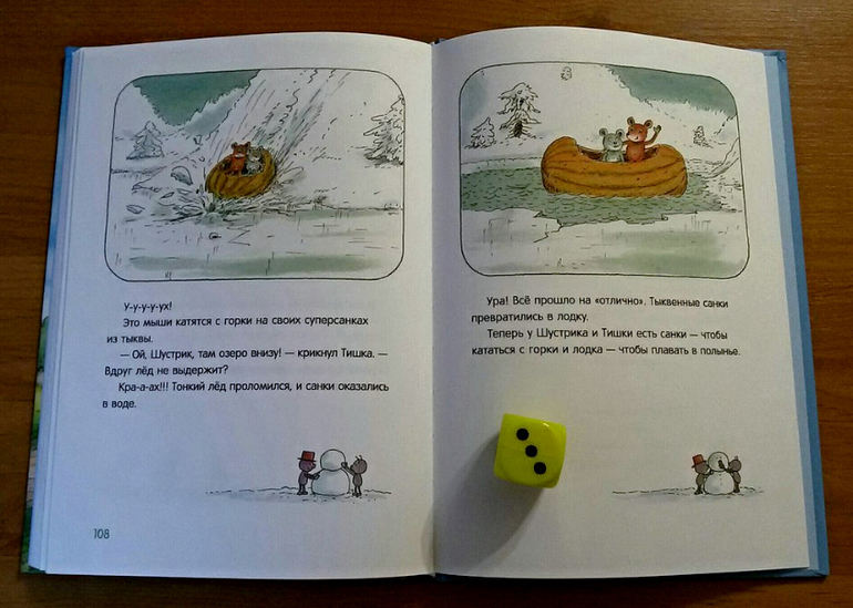Когда у нас оставался уже последний рассказ, книгу увидела дочка и очень расстроилась, почему это мы читали без нее. И вот тут нам пригодилась вторая функция данной книги, посмотрев ее , дочка не испугалась объема текста и согласилась прочитать ее самостоятельно. А младший братик был рад ее второй раз послушать. Особенно его любимые рассказы про кошку-гонщицу и мышку, летающую на ракете к другим планетам. С меня было взято искреннее обещание, что ко второй книге мы приступим только после того, как они осилят первую часть и слушать ее они будут вместе.