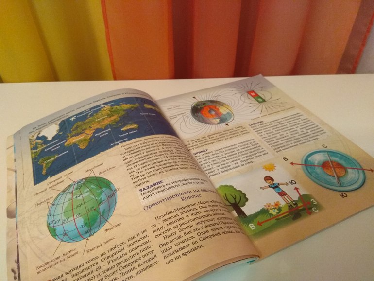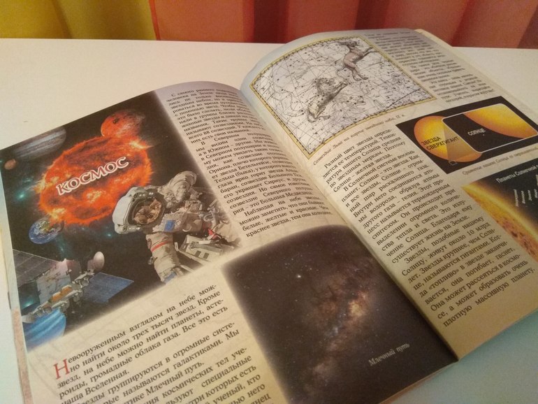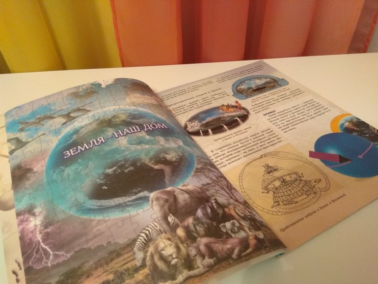 Зато сейчас, найдя в ней в конце раздел "Космос", заодно прочла и всю книжку. С большим интересом между прочим. Мне и самой она понравилась, хоть я всю её не читала, только мельком. Но очень понятная, информативная и не перегруженная деталями. Есть много нужной и интересной информации по разным разделам: общая информация о планете, о континентах, о воде и её значении, о воздухе, о многообразии природы и, наконец, о космосе)). Есть практические задания, очень толковые, которые интересны и доступны ребёнку. До них пока не дошло дело. А Сонь теперь влёт читает правильно даты, большие числа хоть арабскими, хоть римскими цифрами).