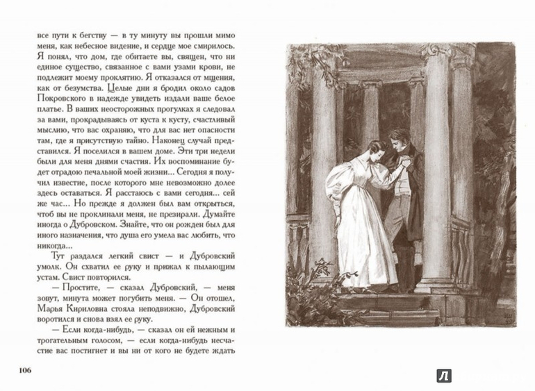 Сюжеты романов "Дубровский" и "Капитанская дочка" Пушкин взял из самой жизни: первый написан на основе рассказа об известном дворянине, а второй результат исследований автора истории пугачевских восстаний. Несмотря на историческую подоплеку и внимание Пушкина к проблеме крестьянства, ведущей в обоих текстах остается любовная линия, которая вкупе с динамичным повествованием делает эти произведения не только глубокими, но и захватывающими внимание читателей. Романы сопровождают классические иллюстрации Дементия Шмаринова, удивительно точно передающие характеры героев и настроение произведений.
