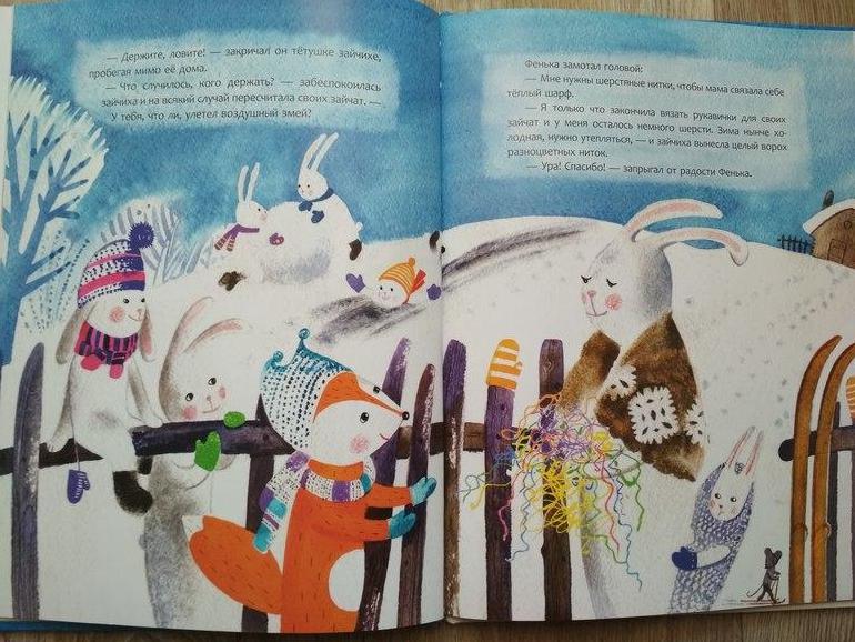часто просит перечитать эту милую сказку про лисенка Феньку, который отправился на поиски шерстяных ниток, чтобы мама могла связать себе теплую одежду.