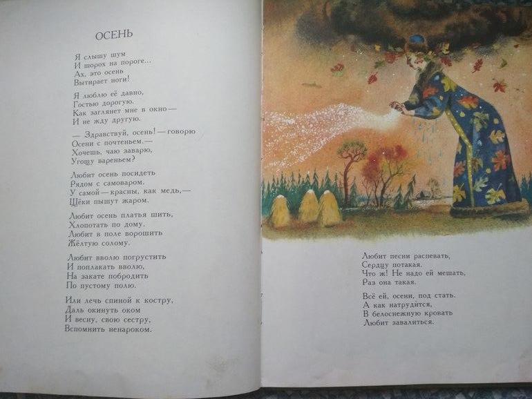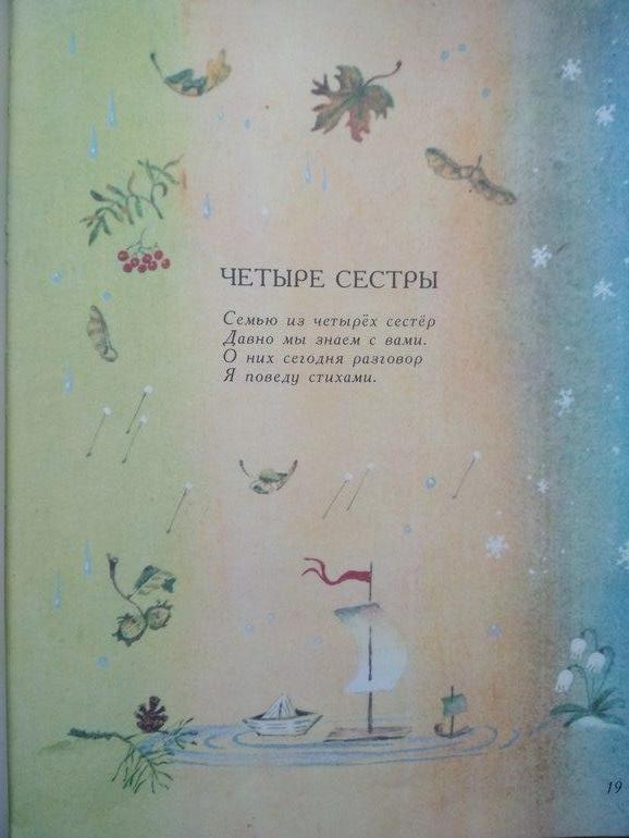 Маша сразу распределила роли по старшинству, себя она ассоциирует с Летом, я Осень, бабушка Зима- самая старшая, а Алёнка весна. Без конца разглядывала этих сестриц, нарисованных Елисеевым.