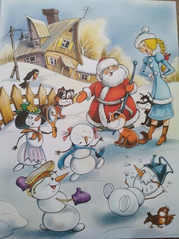 Маша в восторге от озорных снеговиков, с такими разными характерами и забавными фамилиями.
