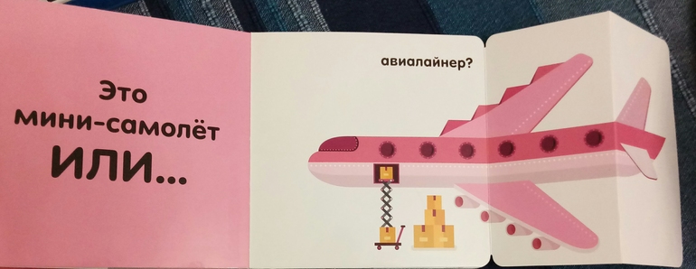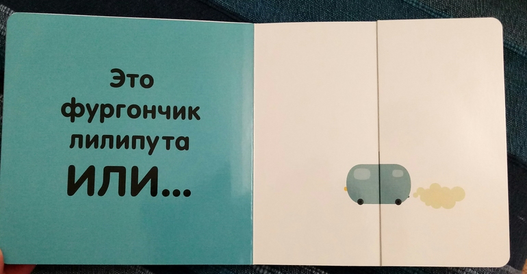 Еще одна книга Большой сюрприз от издательства Поляндрия. Ох, и сложные отношения у меня с этим издательством. Большей частью баловство, книжки картинки по дорогой цене, но иной раз так хочется) эту книгу я вообще не планировала покупать, но на выставке увидела ее, да и покупали ее так бодренько там, что я тоже не удержалась) особенно когда посмотрела на цену без скидки в лабиринте) Захотелось мне тоже ребенка побаловать) В книжке 10 разворотов, 10 транспортных средств. Сначала мы видим маленький транспорт,а потом раскрываем один разворот, и он превращается в большой!