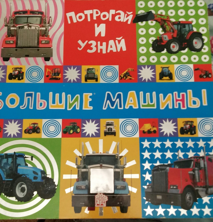 Любима очень до сих пор, трактора, грузовики, экскаваторы, что нужно еще мальчишке) сначала смотрели, гладили, цвета изучали, сейчас учимся считать по ней) подробно показывала тут