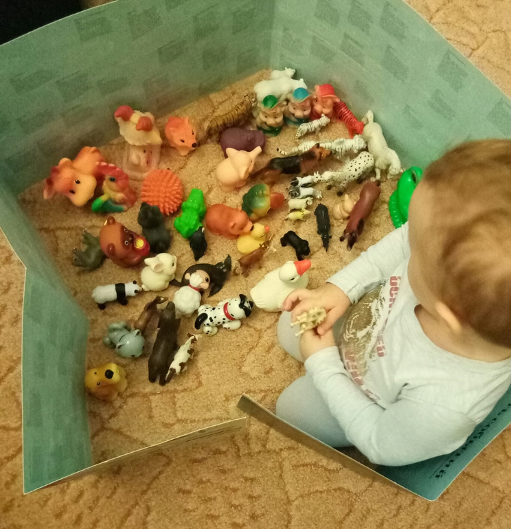 А когда она у нас только появилась, сын использовал ее как теремок) или как загончик для животных)