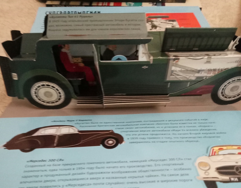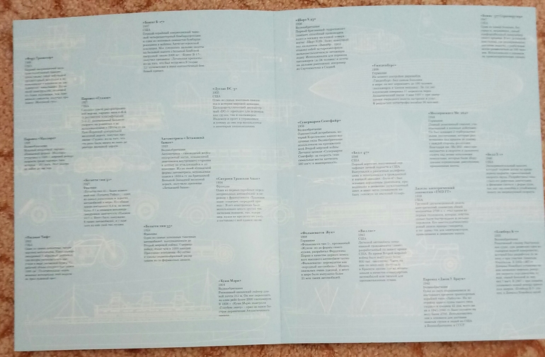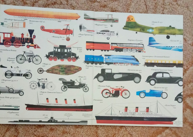Конечно, когда книжка разложена во всей красе, туда сюда лазить не очень удобно, и главное, не забыть, перевернув, про что хотел прочитать) Весь транспорт представлен в хронологическом порядке, очень наглядно видно, как все менялось с течением времени.
