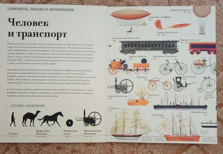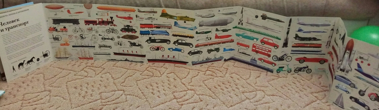 Еще одна книга, где много много транспорта, это Самолеты, поезда и автомобили История современного транспорта в 100 рисунках издательства Махаон . Фишка этой книги в том, что она может ракладывается в двухметровую ленту !