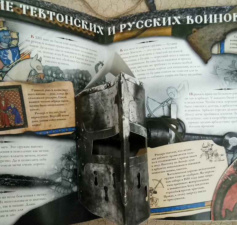 Хотя что тут рассказывать, я думаю, все и так знают, что это шикарная серия книг!Единственный недостаток, цена, но с другой стороны, книги такого качества и содержания не могут быть дешевые. У нас пока только одна, но я обязательно планирую еще про Петра Первого и Бородинскую битву. Тем более, я, конечно, тут неправа, и эти книги отлично подходят и девочкам!) моя старшая с удовольствием ее изучила, как раз перед тем, как проходила эту тему в школе,и сказала, что ей реально очень помогло, и понять и запомнить лучше. Очень ждет следующие) а в связи с возможным обязательным ЕГЭ по истории польза таких книг возрастает в разы! по крайней мере, это я так себе убеждаю) да и вообще здорово, что наши дети могут знакомиться с историей с помощью таких необычных книг!Панорамки, окошки, настольная игра, фигурки воинов!