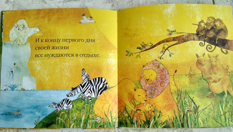 Очень необычные рисунки, такие прям завораживающие. Действительно очень оригинальная техника.. Но на мой взгляд, они все таки не для малышей, так как некоторые животные плохо узнаваемы (львы, обезьяны). Такая книга подойдёт детям, которые уже хорошо ориентируются в том, кто есть кто.