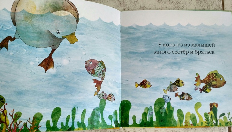 Несмотря на малое количество текста смысл опять же не для малышей, думаю с ребёнком в 3-5 лет хорошо будет обсудить те вопросы которые поднимает автор, поговорить о внешних отличиях, о способе передвижения, питания, о среде обитания..