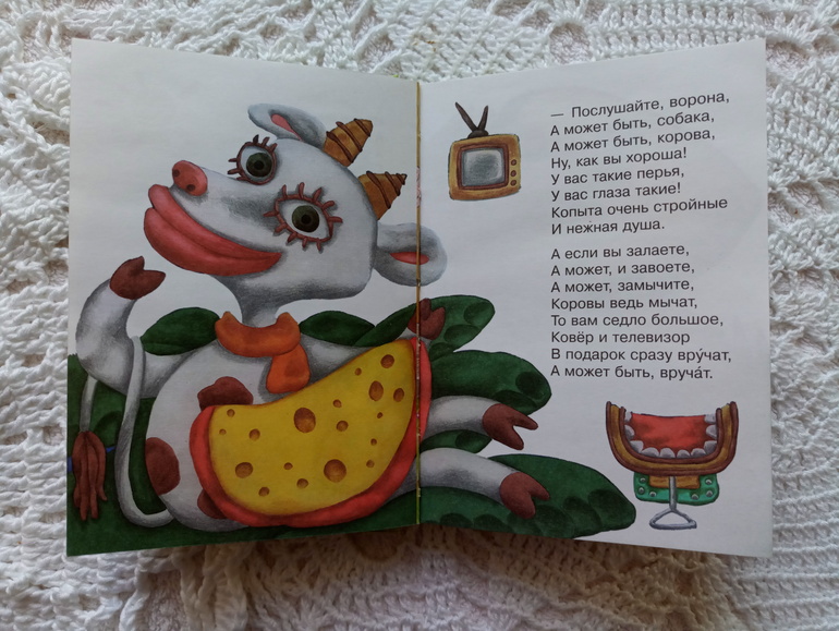 Помню, в сентябре на родительское собрания был опрос на знание своего ребёнка. Я ответила на все вопросы , кроме любимой книги...Не ожидала, что дочь скажет про библиотечную книгу))) Мультфильм она не видела, только песни из м/ф. У нас есть маленькая книжечка, она её тоже очень любит.