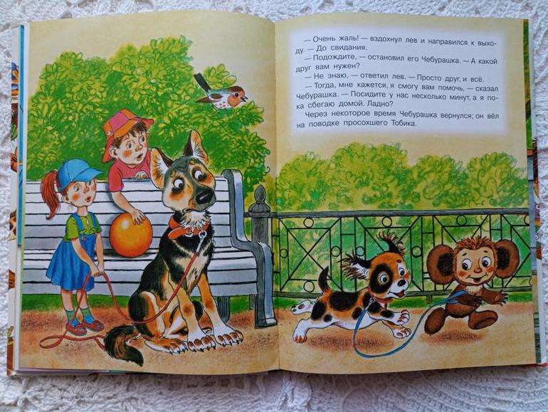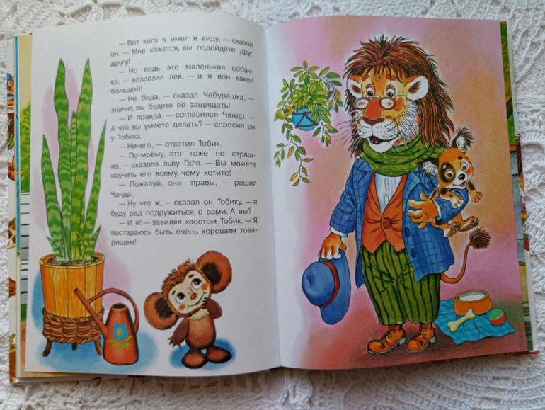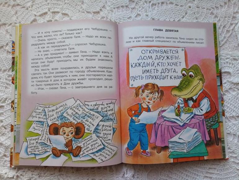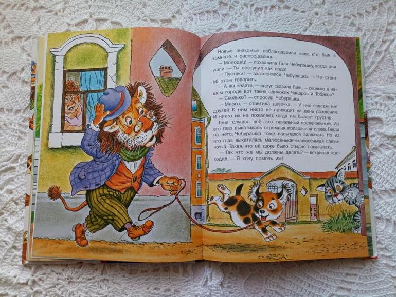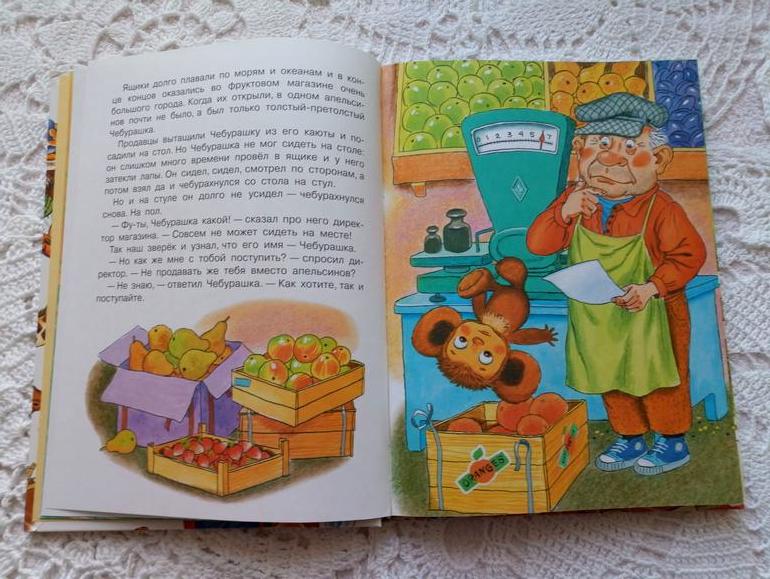 Читали книгу моего детства...без картинок слушала с интересом, но возмущалась, что Чебурашка неправильный, бросили...У нее в группе д/с есть игрушка Чебурашка, они его рисуют, лепят, изучают круги))), одним словом, дочка привыкла к мультипликационному образу Чебурашки)))