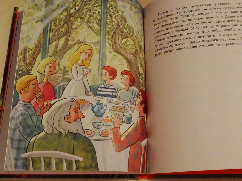 очень летний,тёплый и солнечный.Пропитанный ароматами луга и спелых яблок.Сюжет интригует с самого начала.Семья:мама,папа и двое мальчишек-братьев-снимает на лето домик в уютном маленьком посёлке.Ребята,Илья и Лёшка,очень разные.Первый предполагает,что его ждёт скука смертная и мечтает только,чтоб не подвёл интернет.Зато другой,наоборот,ждёт не дождётся,когда уже можно будет вволю накататься на велосипеде.Они и не предполагают,какие их ждут приключения.