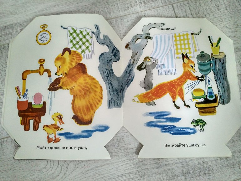 Даше очень полюбилось и само стихотворение и конечно же такие подробные, жизнерадостные рисунки!! Каждый разворот мы тщательно рассматриваем, находим и называем всех зверей, смотрим что каждый из них делает, развитие речи очень нам актуально! Вообще такая своеобразная книжка - гляделка, много героев, действий, но в то же время в глазах не рябит от излишка героев.