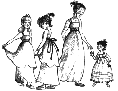 В книге их четыре разновозрастные сестры: настоящая маленькая леди, которая всем заменяет маму, девочка- знаток точных наук и спортсменка, будущая актриса и писательница детективов и застенчивая любительница животных. Такие разные, но все- таки вместе.