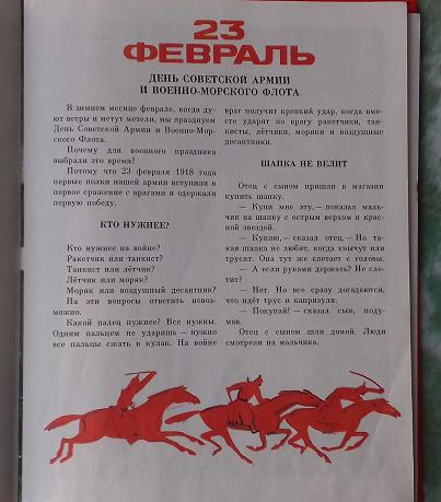 Есть еще, конечно, разнообразные народные солдатские сказки, в которых раскрываются положительные качества русского солдата. Но мне кажется, они к 23 февраля относятся весьма посредственно.