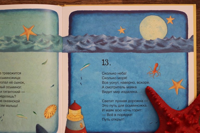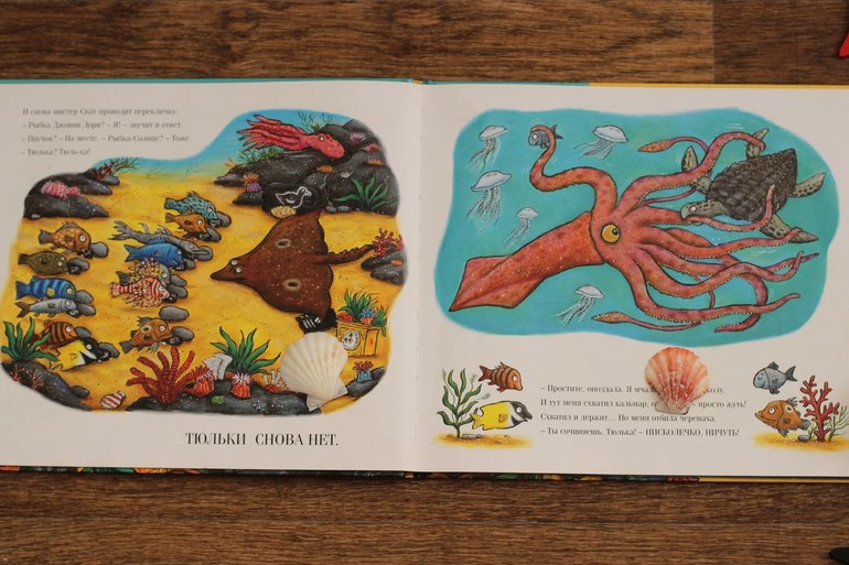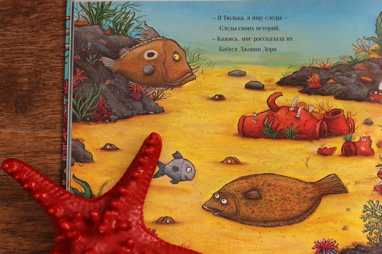 Если две предыдущие книги дали нам энциклопедические знания, то эта книга поделилась с нами забавной историей о маленькой рыбке, которая очень любит фантазировать (совсем как мой Илья). Очень ладный стих и забавные иллюстрации. Невозможно не влюбиться в главную героиню. И невозможно не запомнить «Тюлька? Тюлька! Тюльки в классе нет!».