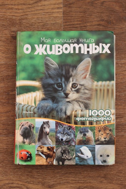 Отличный вариант в качестве первой энциклопедии для малыша в возрасте 1,5-2 лет! В книге много ярких фотографий, краткая информация о каждом из животных. Обратите внимание, книга весьма увесистая (почти 2 килограмма). Но, несмотря на внушительную массу и размер, мои сыновья очень часто несут её мне почитать (вот уже почти два года). А вот сами страницы тонкие, это, действительно, минус. Но не такой значительный, чтобы отказать себе и своему ребенку в удовольствие от покупки очень хорошей энциклопедии!