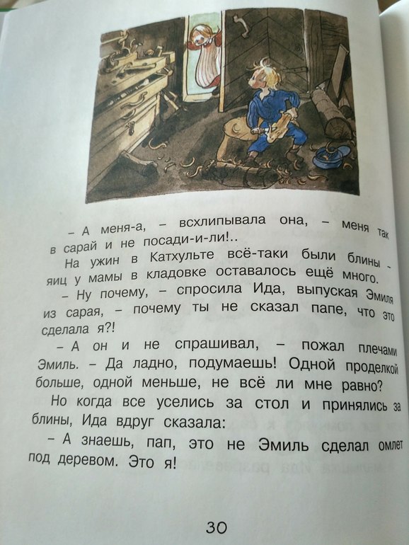 В детстве я не читала Астрид Линдгрен, зато сейчас делаю это с удовольствием вместе с дочкой!! Такие живые у неё получаются герои, и вроде бы истории о детях довольно просты, но их хочется перечитывать, они становятся любимы. Лотту читали много, много раз!! Приключения в Бюллерблю, тоже очень понравилась!! Перечитывали несколько раз и ещё будем. И вот Эмиль!!