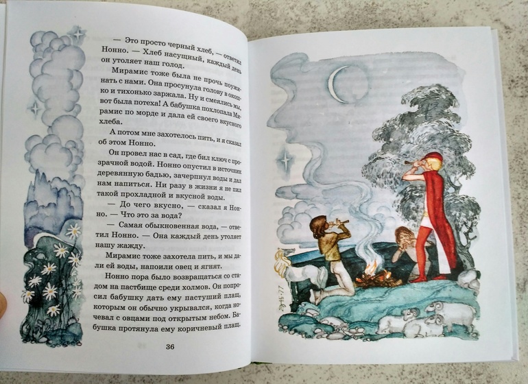 Как хорошо, что эту книгу я прочитала в прошлом году, сюжет в общих чертах помню, имена в голове не остались, но я догадалась, что это за сказка. А на следующий день Аня приболела, в сад не пошла и мы дочитали эту книгу вместе!! Вообще хорошая длинная история, с волшебством, опасными приключениями, дружбой, необычная выдуманная страна, люди, обычаи, герои, совсем не похожи на другие сказки.