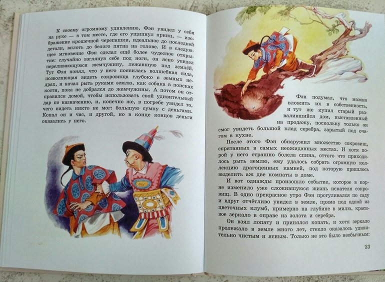 А герои ну очень необычные, я таких ещё не встречала - Дух Грома, король озера Тунтин, принц - Черепаха, который одарил главного героя необычным даром - видеть сокровища глубоко в земле. Ещё есть сказка про царство Короля - Дракона, в котором есть Подводный Театр Танца!! И про привидение, Молодой господин Ху, которое поможет потом главному герою, ведь тот стал для него хорошим товарищем.