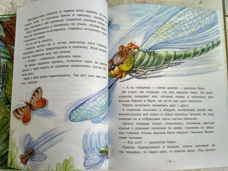 Есть в тексте подробные сведения о некоторых насекомых, их особенностях, способе размножения, питания. В принципе дочь слушает, хотя сами приключения детей ей гораздо интереснее!! Иллюстрации в книге очень много, почти на каждом развороте.
