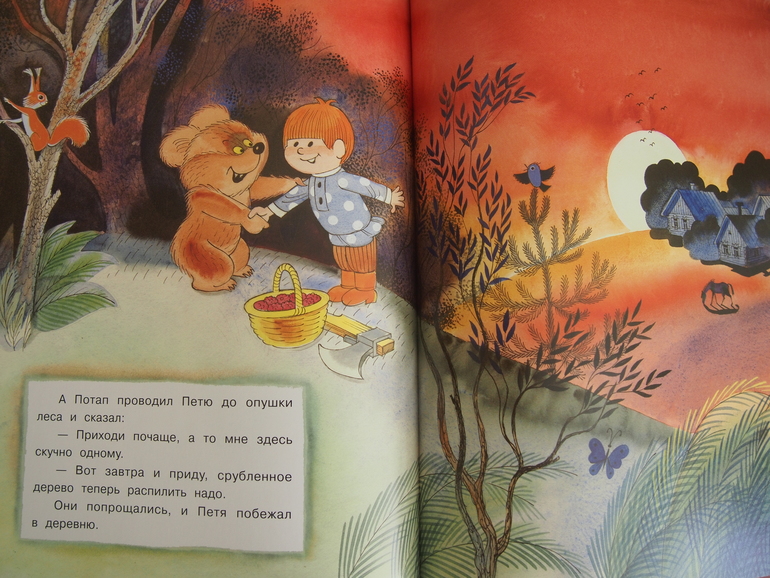 "Петя и Потап" сначала у сына шла с неохотой, потому что Леша боялся злого охотника из третьей сказки. Сейчас уже такого страха нет, ведь злой охотник улетел в космос)