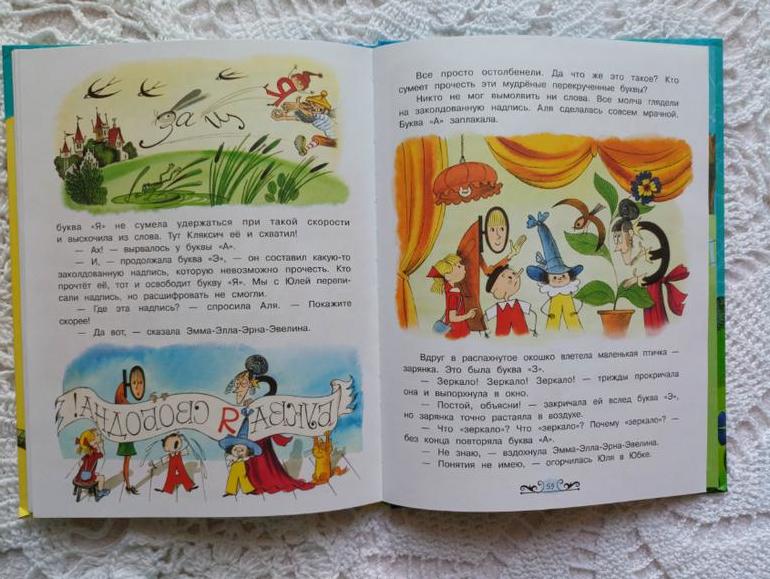 Я часто вижу эту книгу в списках прочитанного, но ни разу не читала восторженного отзыва. Эта книга его заслуживает. Мне очень-очень и очень понравилось. Я в детстве не читала(((( Мне нравится история про девочку, мне нравятся красивые живые буквы, иллюстрации Чижикова. В сюжете есть борьба со злом, есть друзья, есть ученые и хулиганы. Красочная книга интересна 4 летней доченьки и старшей тоже. Советую читать как рассказ про девочку, а буквы выучатся сами.