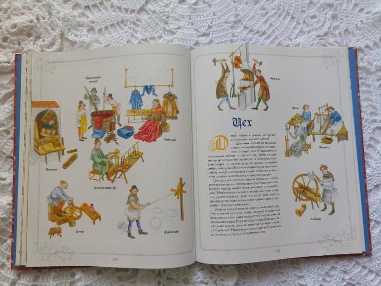 Впереди ещё полкниги, которую мы не успели дочитать, про жизнь крестьян, опасности в лесу, охоту, про городскую жизни, ремесленников, суд, церковь и монастыри, сокровища и университеты, про купцов и деньги.