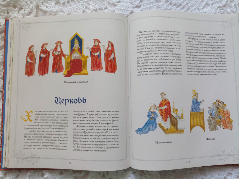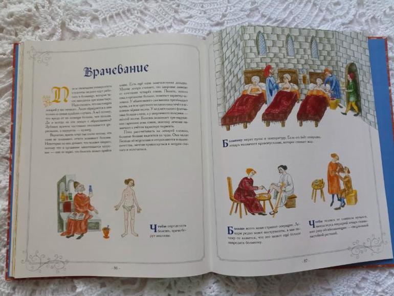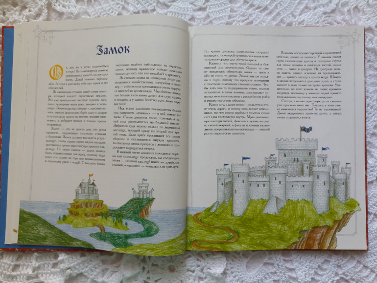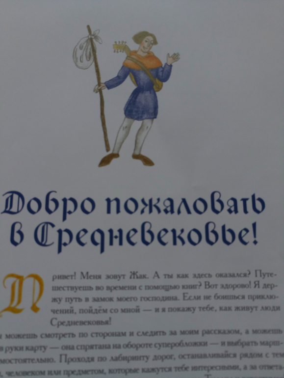 Начну с предыстории....Помните я рассказывала о книге "Садовник и куст"? Так вот мне нельзя покупать книги в подарок....они все равно останутся у нас.)))) " Путешествие в Средневековье " я купила для старшего племянника, у которого день рождение 23 февраля....К подарку я планировала вручить красивую книгу про рыцарей для будущего Защитника Отечества.... Книгу убрала наверх, детям сказала, что это для Левушки. Пришла с работы и вижу , как мой папа ( огромный любитель исторических романов!!!!!) читает девочкам про средневековье!!! Конечно он читал для себя, но с таким интересом, что дочки просто не могли не увлечься!!!! Книгу оставили себе....( Племяннику оформила доставку на дом))))